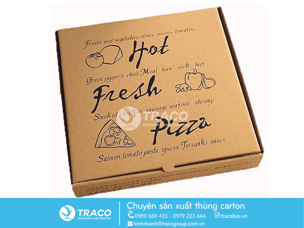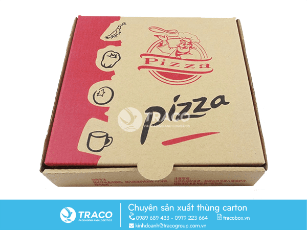 Hộp giấy đựng Pizza giúp bảo vệ hình dạng, hương vị và chất lượng bánh khỏi sự xâm nhập của các tác nhân bên ngoài. Ngoài ra, Công ty Cổ phần Vận tải và Bao bì TRACO là địa chỉ sản xuất hộp giấy đựng bánh pizza uy tín. Hộp pizza có hình dạng và thiết kế đặc sắc, ấn tượng sẽ gợi nên sự mong muốn sử dụng sản phẩm của khách hàng. Chính vì vậy, việc in hộp carton đựng Pizza luôn được các tiệm bánh đặt vào vị trí quan tâm hàng đầu.